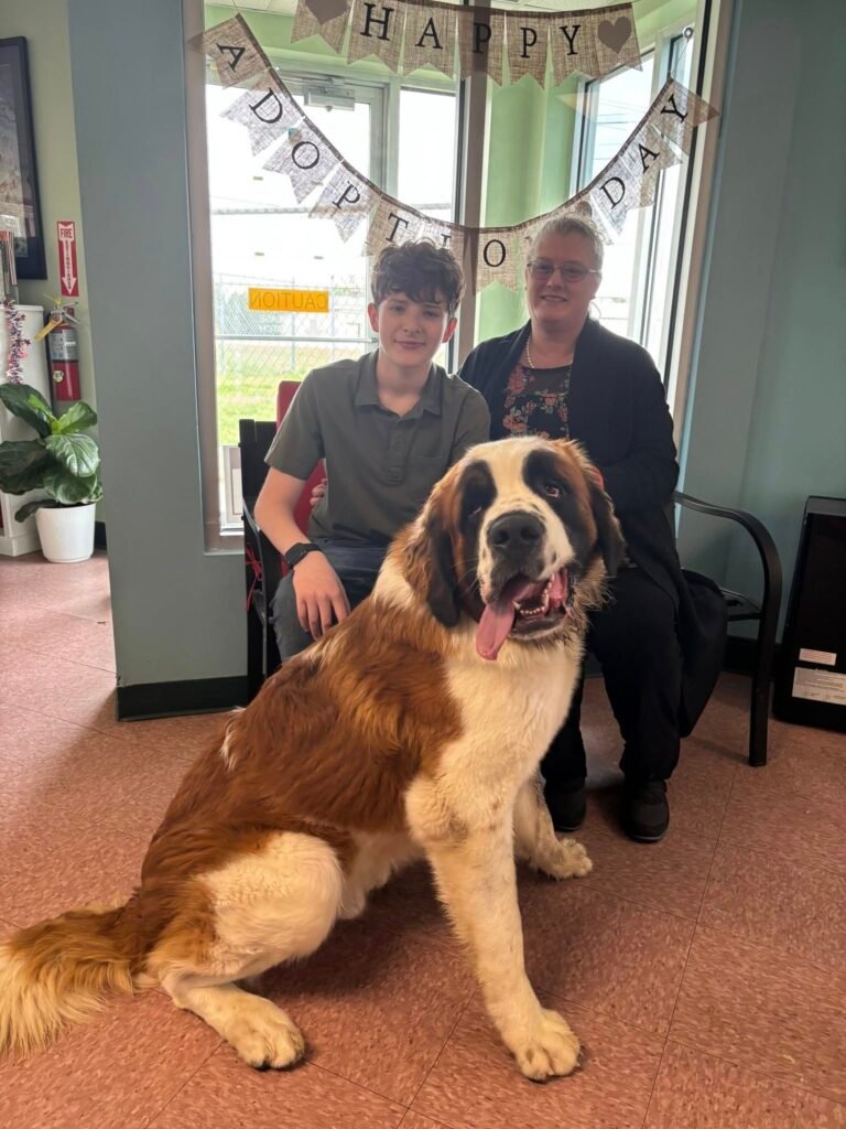 “Our big, lovable Saint Bernard, Thor, has found his forever home! After a second chance at adoption, Thor’s patience and gentle heart have finally paid off,” the shelter wrote.