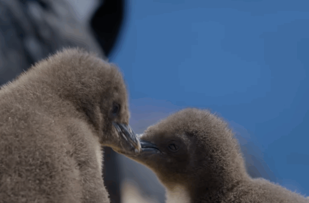 Larger than usual and thriving—hybrid chicks like this could hint at penguin evolution in motion.Photo: National Geographic/Youtube