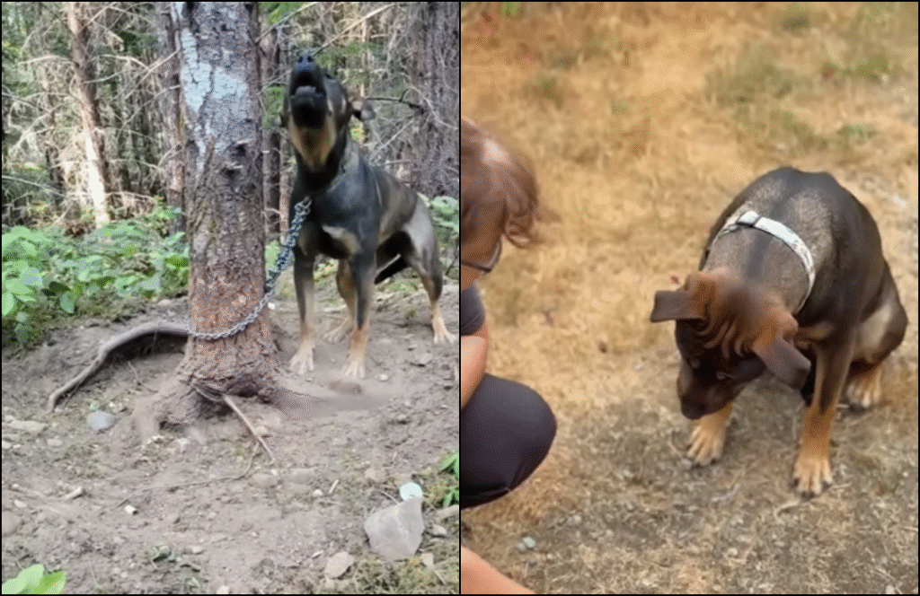 In the midst of a tense wildfire alert, a lone, trembling cry echoed through the forest near Vancouver Island’s Wesley Ridge evacuation zone. It wasn’t a bush rattling or the wind—it was a dog, abandoned and helpless, chained to a tree with no food or water. This story isn’t just about a rescue; it’s about the ripple effect one walk, one neighborly instinct, and one collective willingness to act can have on a terrified being’s life.
