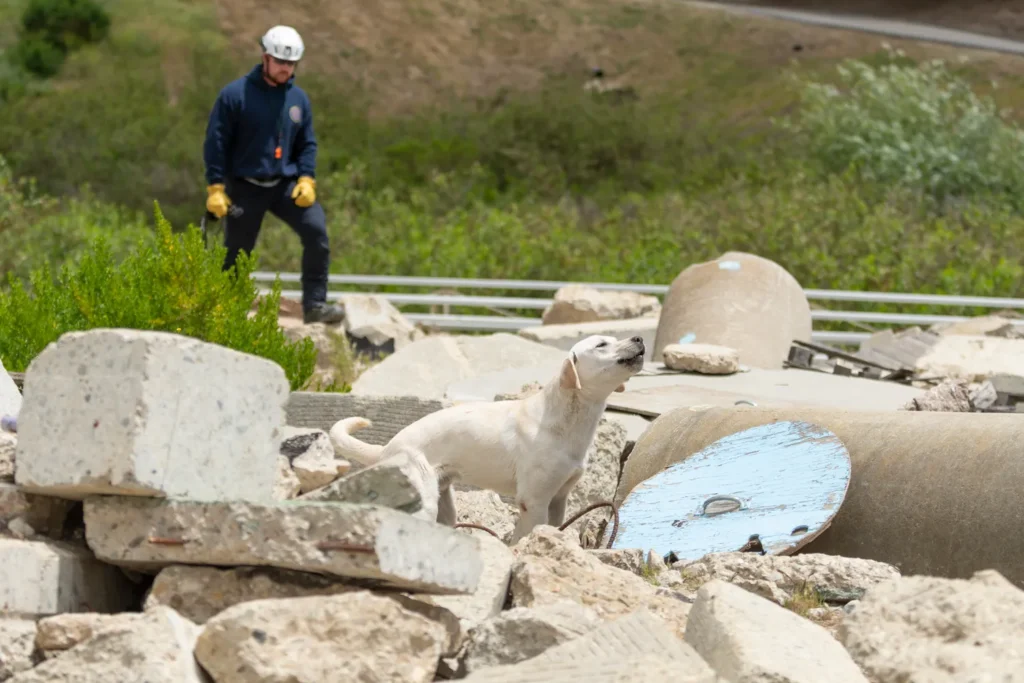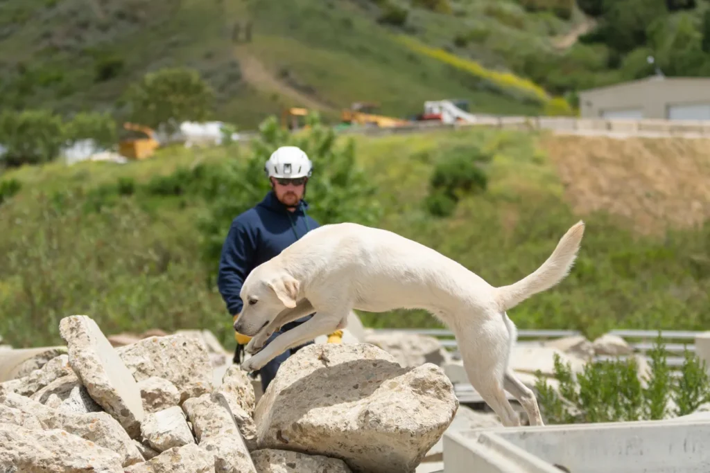 As part of his new role, Cam responds to natural disasters, building collapses, and missing-person cases. In these high-stakes operations, a search dog’s acute sense of smell, agility, and mental fortitude can mean the difference between life and death.