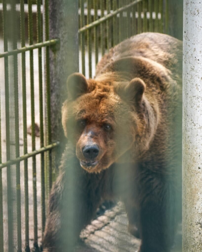 Now, for the first time in his life, Felix has access to a 1,600 m² forested enclosure. It’s designed specifically for senior bears and features shady trees, a large pond, and soft ground—perfect for an old bear with joint pain and impaired vision. His indoor space is lined with hay and straw, providing warmth and comfort.