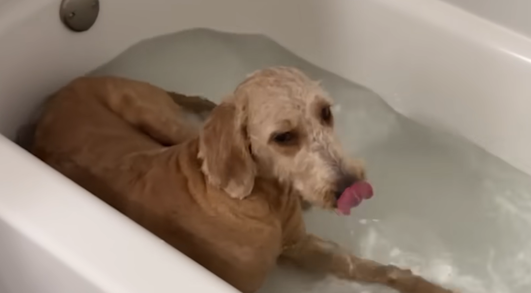 Neglected Rescue Doodle Crashes Foster Mom’s Bath Time in Viral Heartwarmer