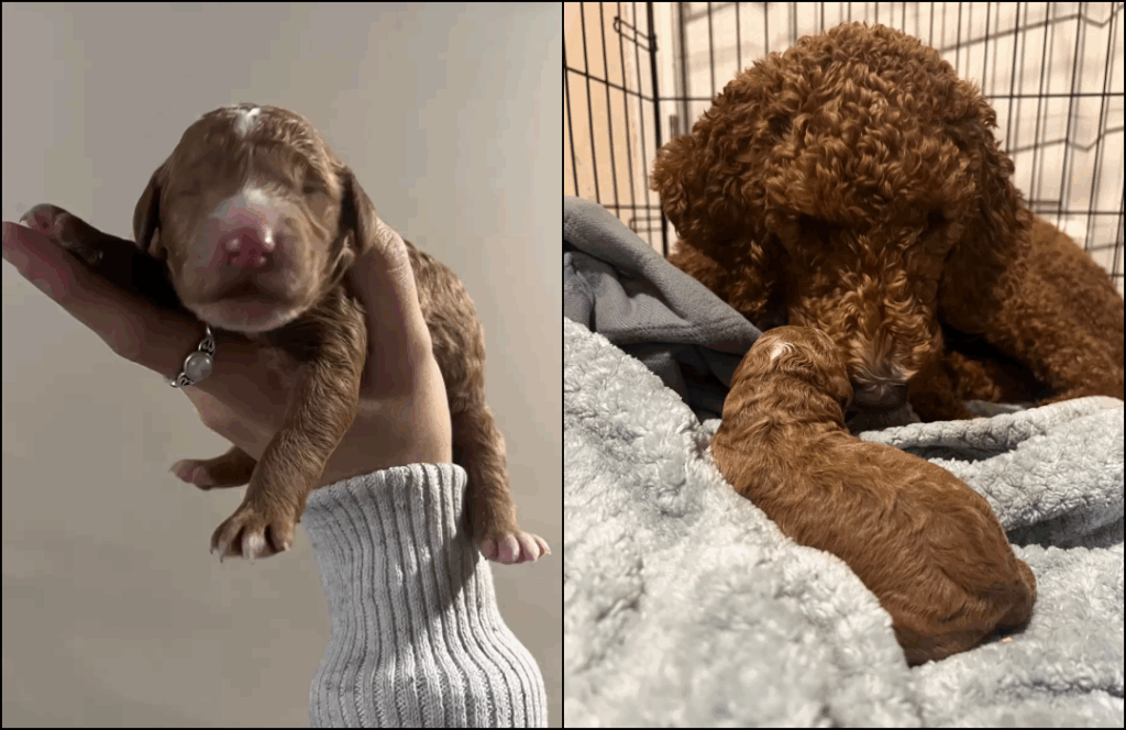 In the quiet of her new foster home, the poodle seemed frail and withdrawn. Kaitlin gently settled her in, offering nourishment and warmth. As days passed, a bond quietly blossomed between foster mom and dog. Kaitlin assumed the signs of motherhood were from a previous litter, possibly from a puppy mill—where mothers are discarded once they’re no longer profitable. Still, deep in her heart, she hoped this sweet soul would find a peaceful reprieve in her care.
