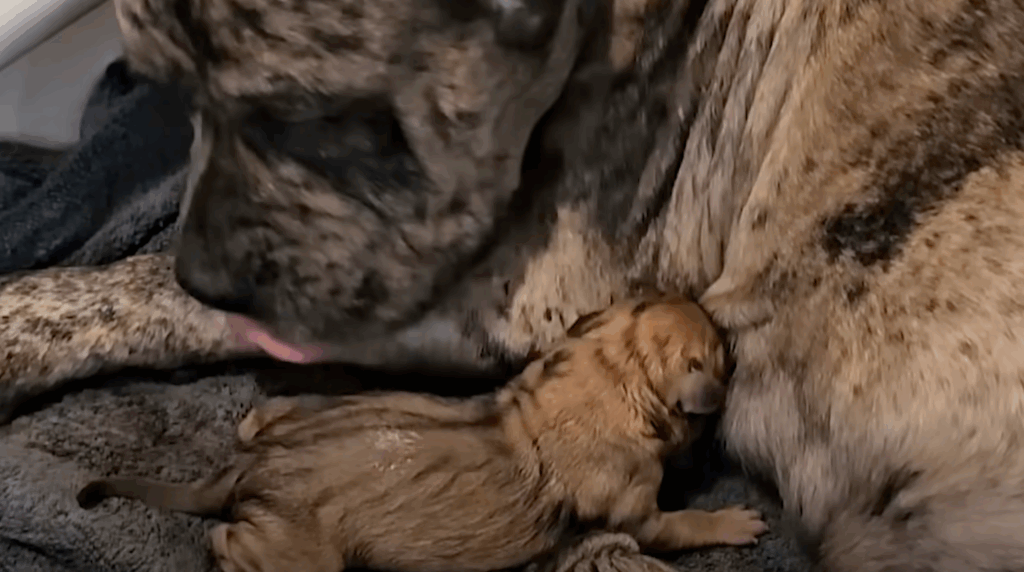 It wasn’t long before the signs came. Melody grew restless, skipping dinner one night and breathing heavily the next morning. Nicole stayed by her side as she went into labor, comforting her through every contraction. By 4 PM, Melody had given birth to ten perfect puppies.