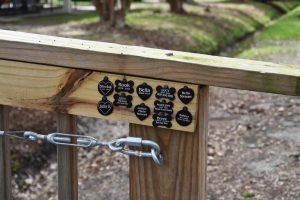 The memorial centers on its namesake bridge, where residents freely attach collars, leashes, toys, or other keepsakes to a cable along the structure. Engraved tags bearing pets’ names can be purchased through the Pearl River County SPCA, with proceeds supporting the shelter; these install monthly on the wooden railing.[4] Surrounding elements enhance the tranquil atmosphere donated by artists and groups.