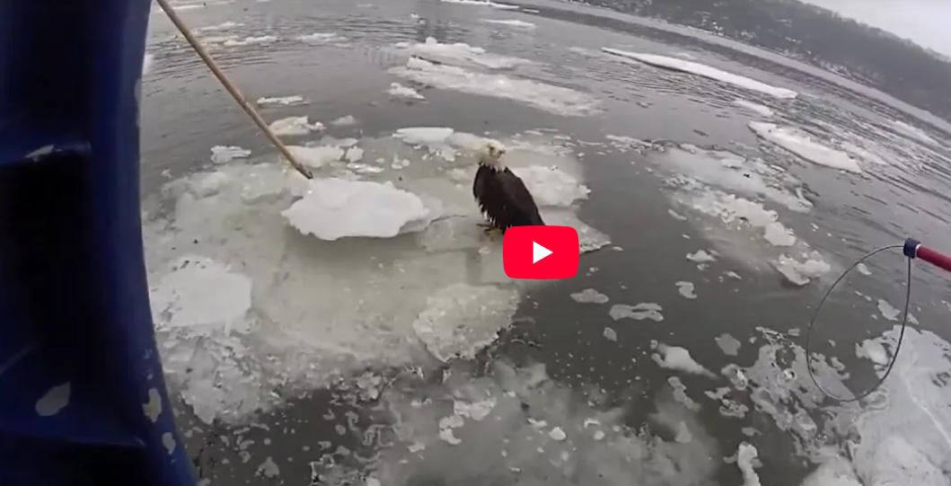 - The bird suffered a bleeding wing injury and floated on river ice.